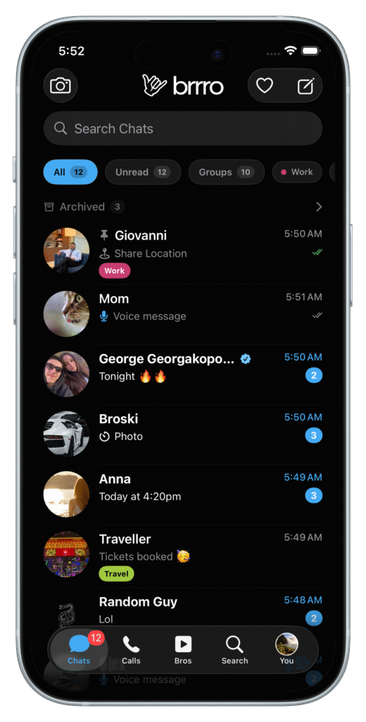 Brrro feels familiar from the moment you open it. The interface is clean, intuitive, and designed to work exactly how you expect a modern messaging app to work, just without compromising your privacy.